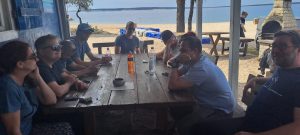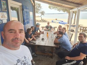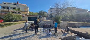 Po povratku, smo se uputili na večeru u kafić Peppi, gdje su nas dočekale mesne delicije s roštilja i lignje. Ugodna večer u Šimunima okupila je sve sudionike akcije u opuštenom i neformalnom druženju, koje je završilo uz pjesmu.