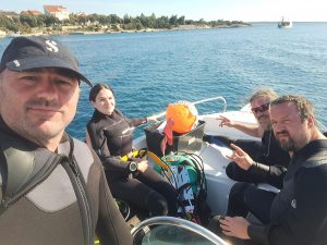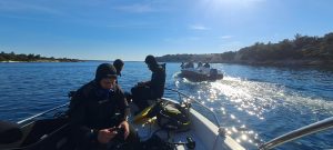 Nakon službenog dijela ronilačke akcije, članovi našeg kluba su vrijeme do večere iskoristili za dodatni, spontani zaron. Ukupno 18 ronilaca, među kojima i četiri člana DPS-a, odlučilo je istražiti novu lokaciju. Domaćin i organizator Marin stavio je na raspolaganje dva glisera, kojima se ekipa uputila prema obližnjoj uvali, udaljenoj svega nekoliko minuta vožnje.