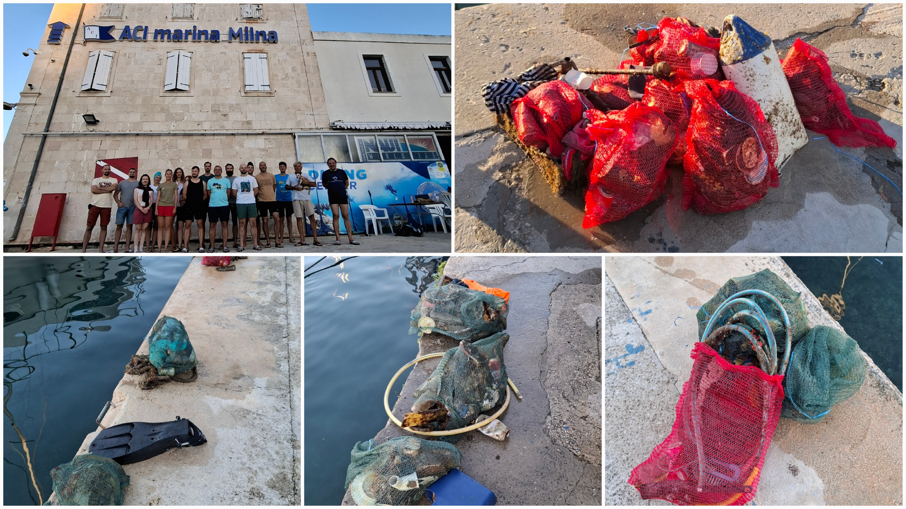 Nakon pauze i punjenja boca, dočekala nas je posebna misija: akcija čišćenja ACI Marine Milna u organizaciji Draulika. Petnaest ronioca skupljalo je ono što ne bi smjelo biti u moru, od boca do raznih iznenađenja koja ćemo, iz diskrecije prema bivšim vlasnicima, zadržati za sebe. 🙂 Nakon pranja opreme i zadovoljstva zbog odrađenog posla, uslijedio je logičan nastavak: roštilj na brdu iznad Milne, uz pogled koji je sam po sebi dovoljan razlog za povratak.